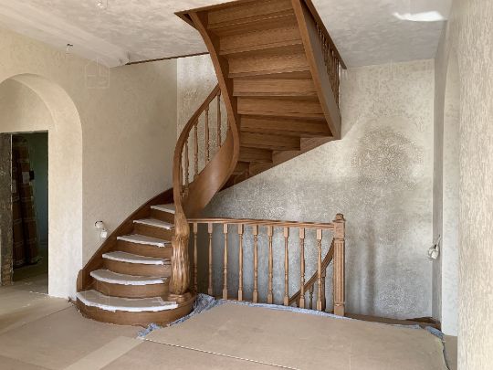 Декорирование лестничных зон со сложной геометрией и значительной высотой требует особого подхода к ценообразованию:
